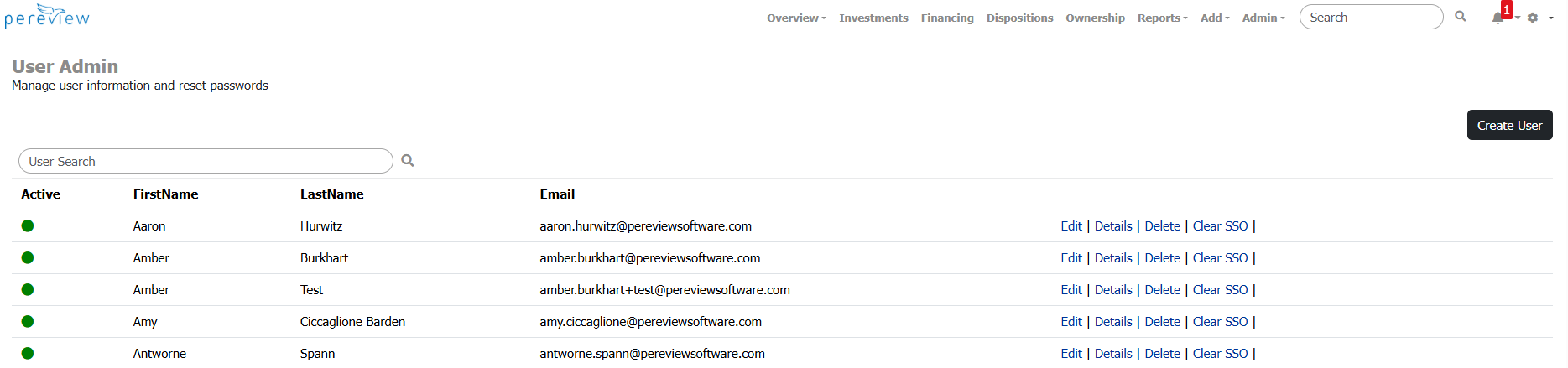 Leveraging the Users section of Pereview, administrators with the appropriate permissions can view, create, and manage users within Pereview.